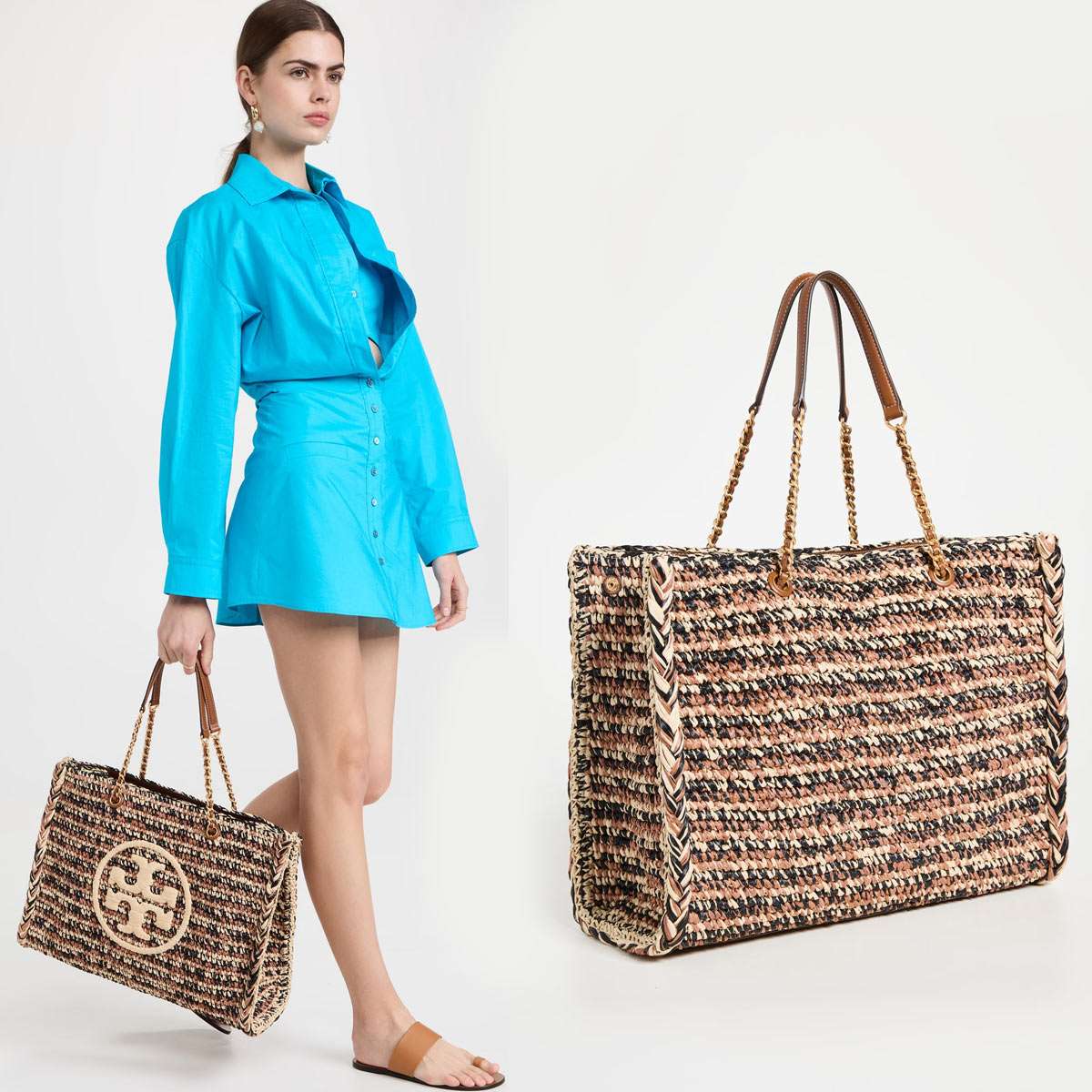 Tory Burch トリーバーチエラ ラフィア チェーン トート 世界中のセレブに根強いファンをもつトリーバーチはさりげないラグジュアリーを提案するライフスタイルブランドです。