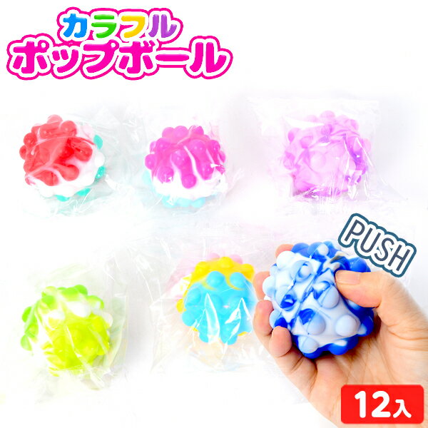 カラフル ポップボール 12入 { 景品 玩具 おもちゃ オモチャ 人気 子供 お祭り 子供会 イベント パーティー くじ引き 福引き 輪投げ 射的 お子様ランチ 販促 配布 }{ 景品玩具 ポップチューブ ボール スクイーズボール ストレス解消 知育 }234[22G18]