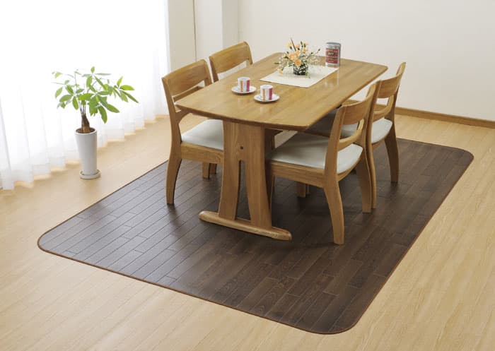 ダイニングラグカーペットCFプリントマット(H)サイズ表 185×185cm 185×250cm 185×300cm マットサイズ60×150cm (滑り止めシール6枚付き) マットサイズ60×200cm (滑り止めシール6枚付き) マットサイズ60×250cm (滑り止めシール6枚付き) マットサイズ60×300cm (滑り止めシール6枚付き) 185x300cm お掃除がカンタンなので、子供部屋やダイニングに最適! カーペットCFプリントマット (H) 防炎・抗菌・防カビダイニングラグ カーペット CFプリントマット(H) 抗ウイルス 防炎 抗菌 防カビ 約185×300cm ↑185×250cmのダークウッドです ↑185×300cmのウッドです ↑ふち部分はテープロック加工されています(ダークウッド) ↑(ウッド) ↑裏地です 一流メーカーのクッションフロア お掃除がカンタンなので、子供部屋やダイニングに最適! キッチンに最適なマットサイズもご用意しましたので同色でコーディネートできます♪