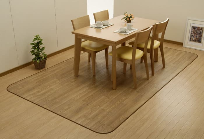 子供部屋やダイニングテーブルの下、リビングにも最適です! ◆サイズ:185x300cm ◆素材:表面:塩化ビニール100%、裏面:ガラス基材、フチ:布製 ◆全厚:1.8mm ◆日本製 ◆機能:抗ウイルス、抗菌加工、防カビ加工、防炎加工、撥水(フチ部分を除く) ※床暖房・ホットカーペットには対応しておりません。