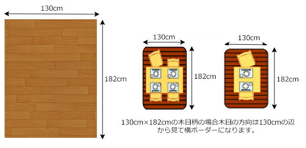※木目の柄は130cmの辺から見て横ボーダーになります。