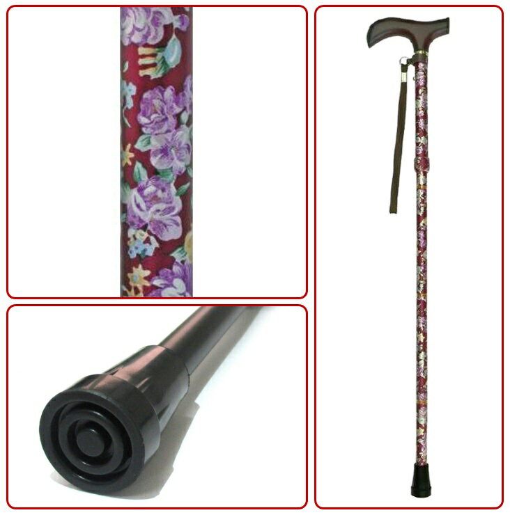 ワイン色のおしゃれな花柄杖は、女性にオススメの高齢者用杖です。