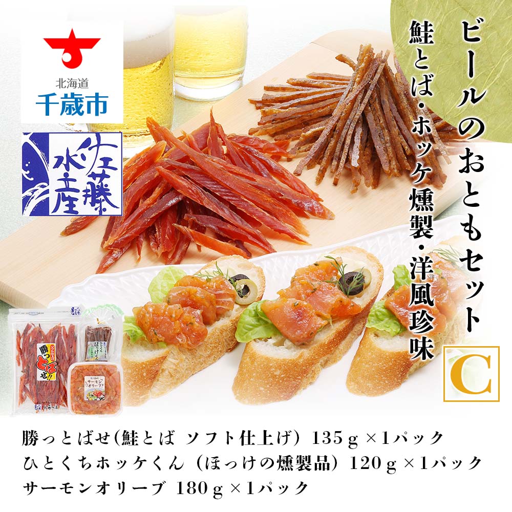 【ふるさと納税】 <佐藤水産>ビールのおともセットC(鮭とば・ホッケ燻製・洋風珍味)魚貝類 つまみ 肴 珍味 鮭とば とば ほっけ ホッケ 燻製 珍味 スモーク 北海道ふるさと納税 千歳市 ふるさと納税【北海道千歳市】ギフト ふるさと納税