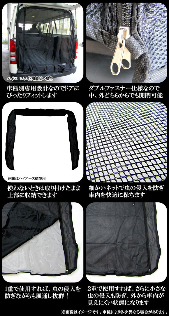 ■関連事項車 カー用品 防虫ネット モスキートネット バグネット ネット 網 防虫 虫 蚊 窓 キャンプ アウトドア 車中泊 着替え 風 エアコン エコ ドア 車種専用 HIACE トヨタ自動車 リアゲート リヤゲート バックドア リヤドア ラゲッジ HN28T1003■適合情報TOYOTA トヨタ自動車■JAN4582483663065