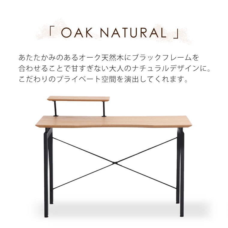 商品サイズ [ 外寸 ] 本体:幅120×奥行60×天板までの高さ74cm 棚板:幅50×奥行25cm (棚下14cm) 重量:約25kg [ 内寸 ] 股下:幅103×奥行55×天板までの高さ71cm 材質 天板:オーク突板 (MDF) 脚部:スチール脚 (粉体塗装) 塗装:ラッカー塗装 商品詳細 組立品※約20分 天板耐荷重:約30kg PCデスク ナチュラル の解説 ・ロングヒットしているレガートデスクのナチュラルタイプ。