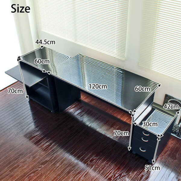 *サイズ:デスク/幅120×奥行60×高さ70(cm) *パソコンデスク/幅60×奥行44.5×高さ70(cm) *スライドテーブル/幅57×奥行30(cm) *下棚&プリンター部/幅50×奥行43(cm) *3段チェスト/幅30×奥行42×高さ51(cm) *小引出内寸/幅24×奥行33.7×深さ7.1(cm) *大引出内寸/幅24×奥行33.7×深さ21.8(cm) *材質:デスクの天板・キャビネット天板 *キャビネットの引き出し前面はキズに強いポリエステル加工化粧板 *その他はプリント化粧合板、アルミ調取っ手プラスチック製 *日本製 *組立品 ■送料:全国一律900円 ※この商品は代引きできません。