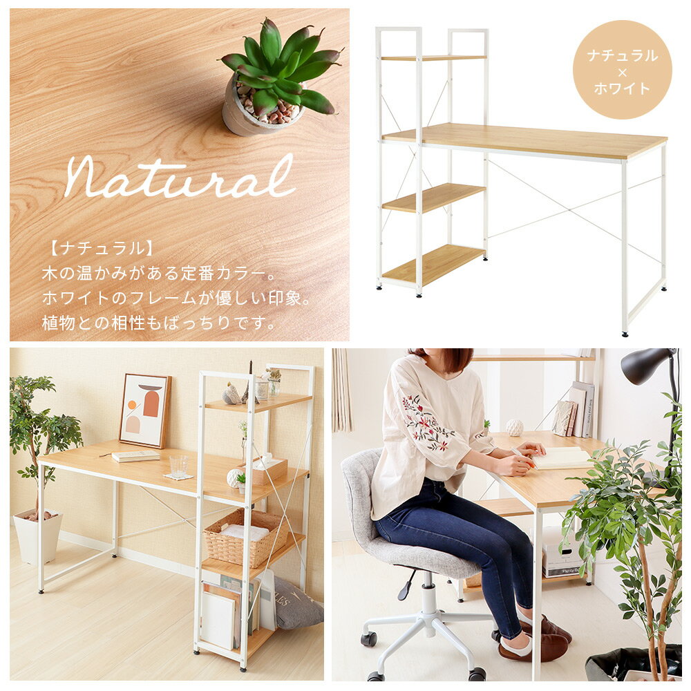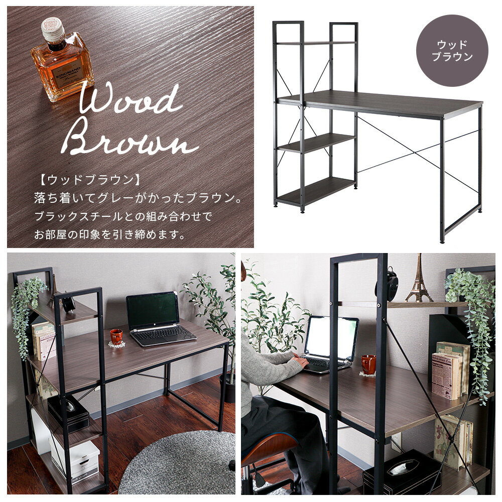 サイズ 商品詳細 商品名 棚付きデスク【Rhetoric(レトリック)】120幅 品番 ナチュラル:82-702 ダークブラウン:82-703 アッシュ:82-704ホワイト:82-711 JAN ナチュラル:4986112827024 ダークブラウン:4986112827031 アッシュ:4986112827048 ホワイト:4986112827116 素材 パーティクルボード+メラミンシート、スチール 表面加工 粉体塗装 サイズ (本体):約幅120×奥行64×高さ122cm 重量 約17kg 耐荷重 天板:約20kg 棚:約5kg 備考 ※お客様組み立て品木目は商品によって異なります。