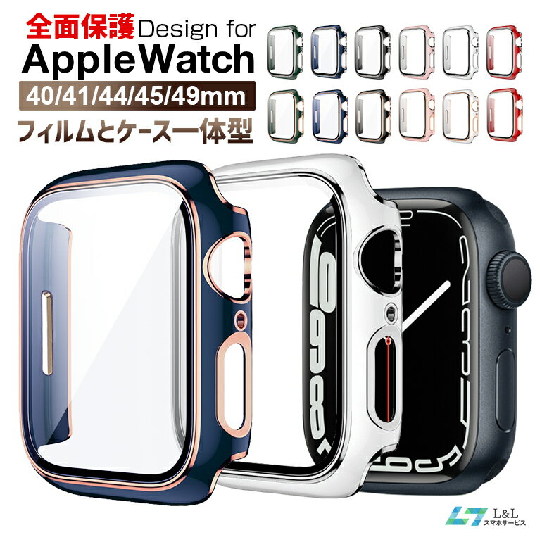 Apple Watch シリーズ 7 45mm 41mm 対応 強化ガラス一体型ハードケース メタリック ツヤあり ツヤ消し プロテクトカバー ポリカーボネート 9H 傷防止 画面割れ防止 Series7 アップルウォッチ