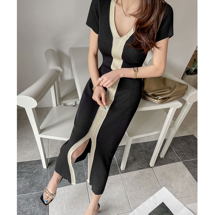 商品番号 ks2-5439 サイズ(cm)※B/W/Hは推奨サイズ ■フリーサイズ 丈:120 / 肩幅:34 / 袖丈:16 B:78-92 / W:60-80 / H:78-92 カラー ブラック 素材 ポリエステル / 伸縮性:強 モデル 167cm/S着 詳細 タイト気味の仕立てがエレガントセクシーな、ニット仕立てのロング丈ワンピースです。