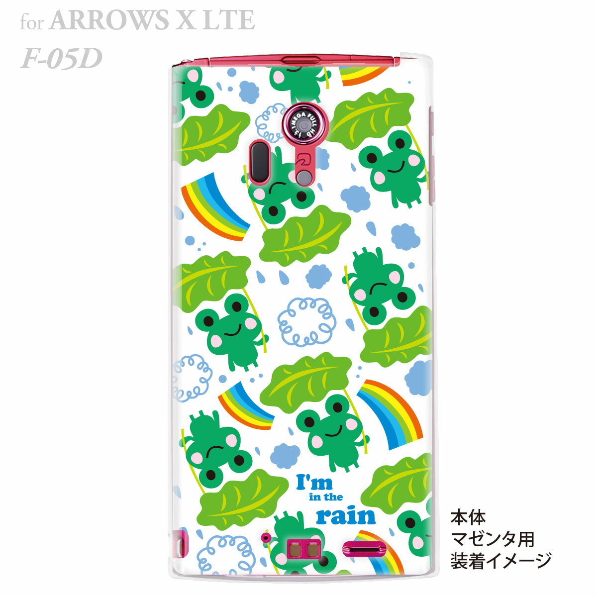 【TORRY DESIGN】【ARROWS X LTE F-05D】【docomo】【ケース】【カバー】【スマホケース】【クリアケース】【アニマル】【カエル】【虹】【レインボー】【雨】 27-f05d-tr0018