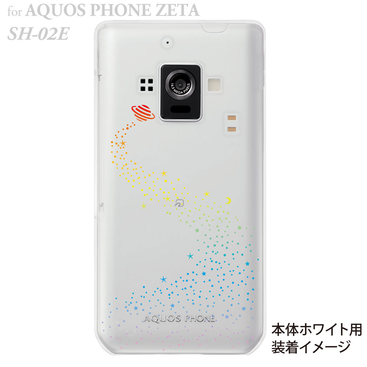 docomo AQUOS PHONE ZETA SH-02E ドコモ アクオスフォン SH-02E 「Clear Arts」クリア・アーツ 本体の色をいかしたクリアケースのデザインになっています。