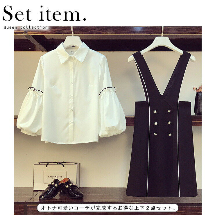 2020/10/02UP!商品詳細 -Item introduction- 商品No 735215 商品名 ボリューム袖ブラウス+ビジューボタンジャンパースカート 実寸サイズ (cm) 【L/XL/XXL/3XL/4XL】 (トップス) バスト 94/98/104/110/112 肩幅 37/39/40/41/42 袖丈 46/48/50/51/52 腕回り 34/36/36/36/36 着丈 60/61/62/63/64 (スカート) ウエスト 78/84/90/94/102 スカート丈 84/84/84/86/88 ・後ろファスナー 素材 (トップス)ポリエステル100% 伸縮性なし 透け感あり (スカート)ビスコース60% ナイロン35% スパンデックス5% 伸縮性あり 透け感なし 生産国 中国製 注意事項 ※色味・素材感・付属品が画像と多少異なる場合がございます。