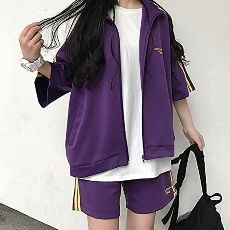 レディースジャージ上下セット 夏 セットアップ 半袖 ラシニコ楽天市場店 【セット内容】 半袖 パーカー、ワイドショートパンツ 厚すぎず薄すぎず丁度いい生地感で、長い期間使用できるジャージ上下2点です。