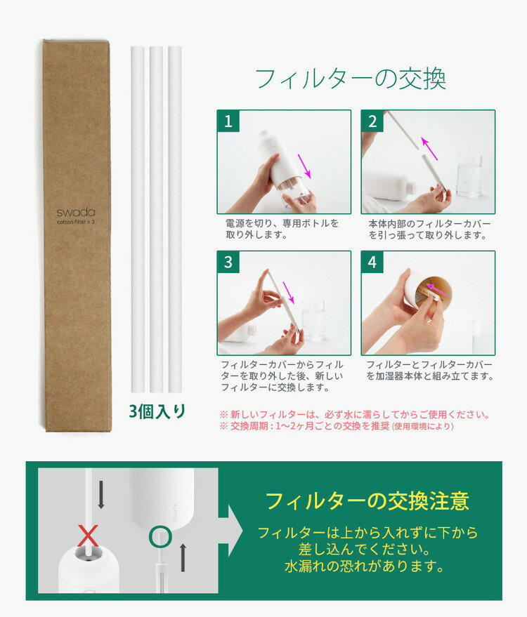 商品紹介 お取り寄せ BLUEFEEL コードレス加湿器 SWADA専用フィルター交換用 3個入り ■ 交換用フィルター3本セット スプリングの長さ・強さ、フィルター質・素材、ミスト噴出量などSWADA専用として精密設計されてあります。