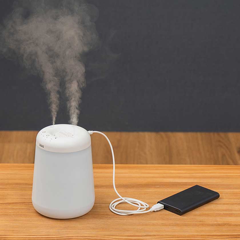 2ヵ所から出るたっぷりのミストが、お部屋の湿度を保ちながら 夜は優しい灯りで演出してくれる加湿器です。