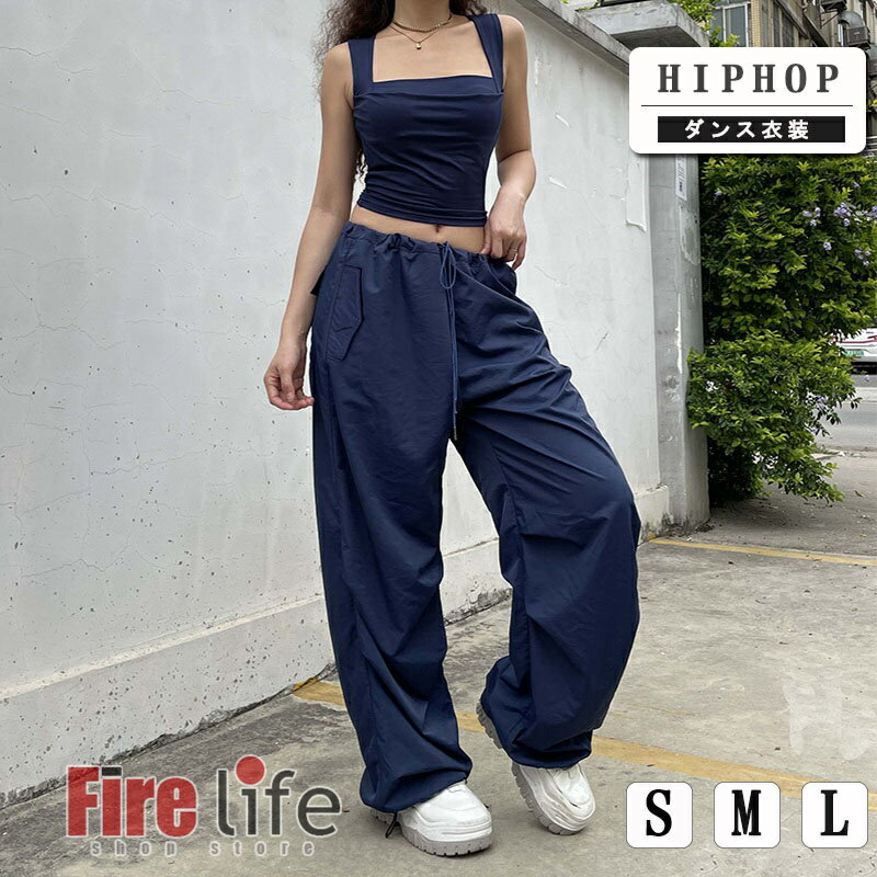 レディースダンス衣装 単品 セットアップ ブルー ダンスファッション キャミソール カーゴパンツ オシャレ 合わせやすい セクシー へそ出し カットソー ダンス イベント 夏
