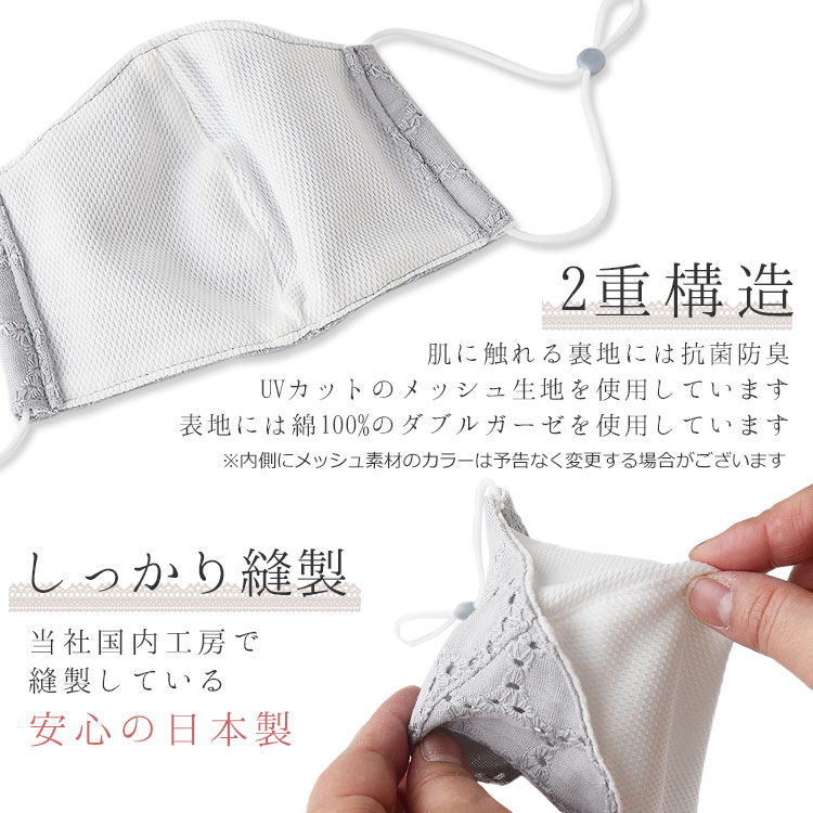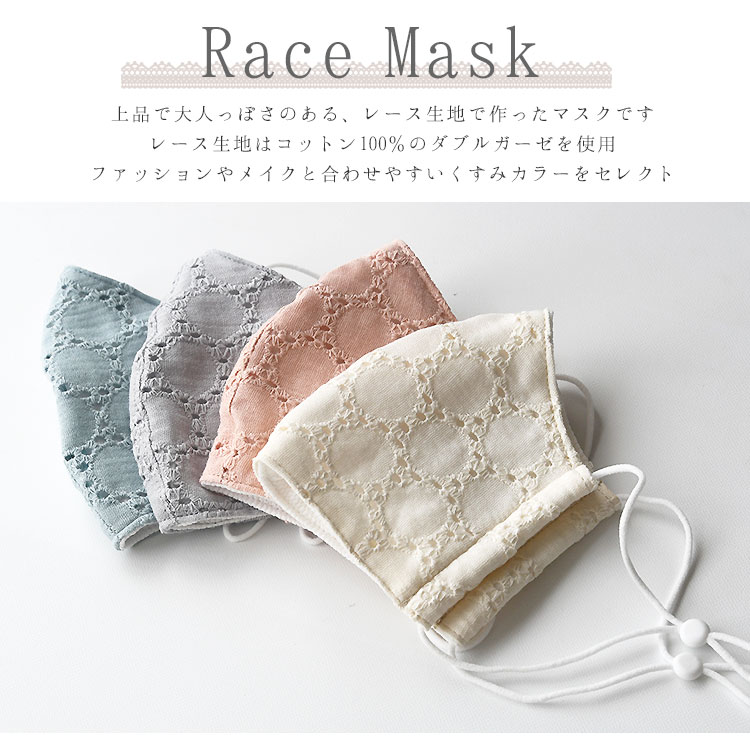 ■商品説明 Description ■コットン100%のダブルガーゼを使用したレースマスク 当社国内工房にて、縫製している日本製の布マスクです。