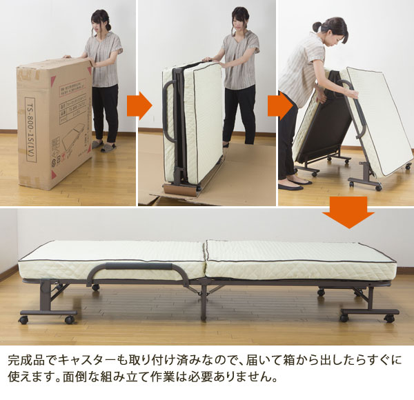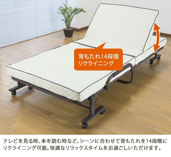 コンパクト折りたたみベッド 幅94cm ショートシングル 完成品 14段階リクライニング キャスター付き TS-801-2S-SH